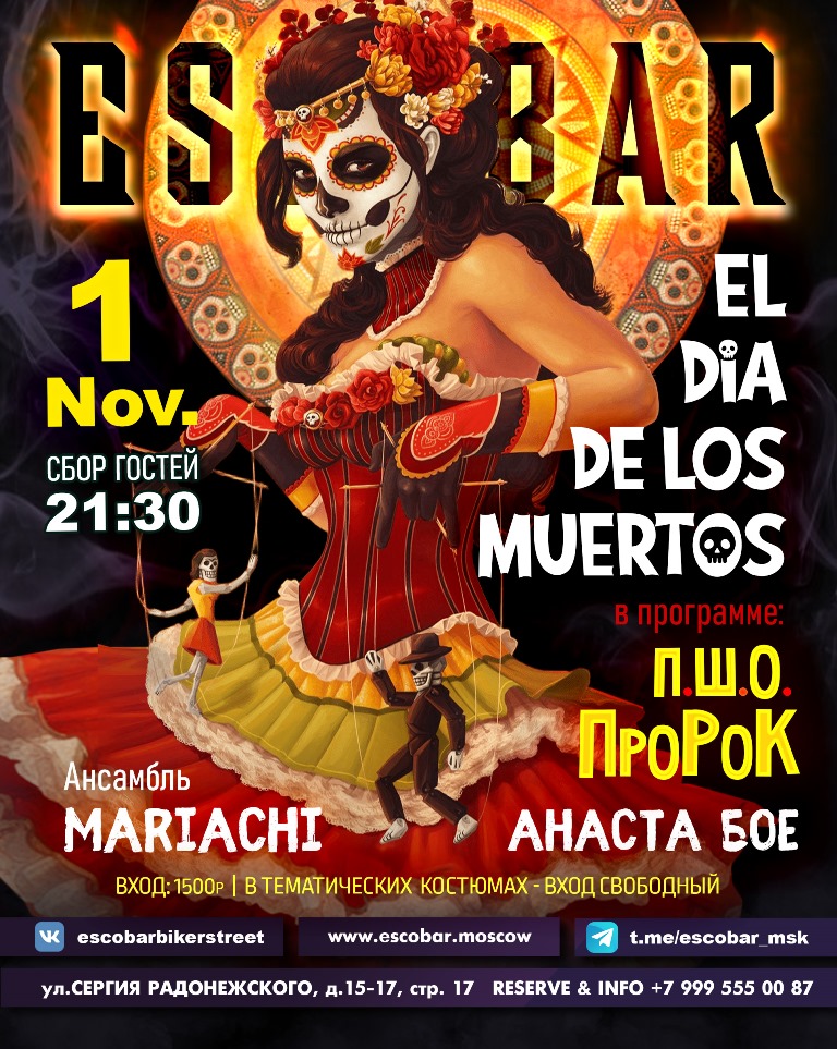 💀Костюмы не только приветствуются , но и поощряются! Обладатель самого интересного костюма получит подарок от бара Эскобар!