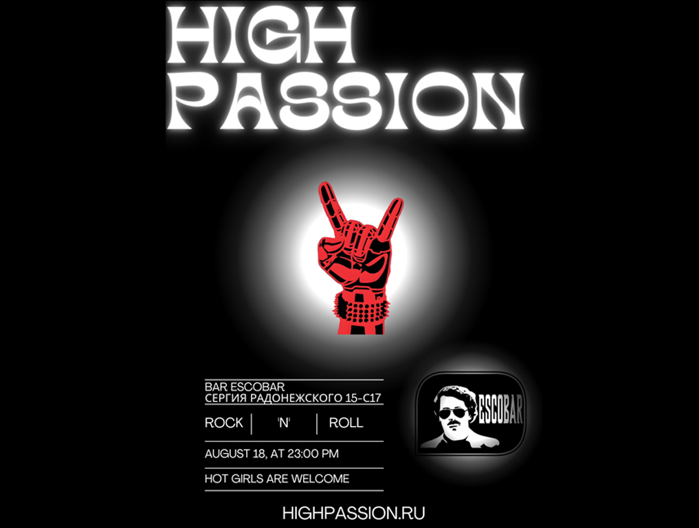 Группа High Passion исполнит неповторимые авторские песни, а также каверы на самые громкие хиты рок-н-ролла. Для них рок — это искусство неповторимости, энергичности, бунта и мелодичности.