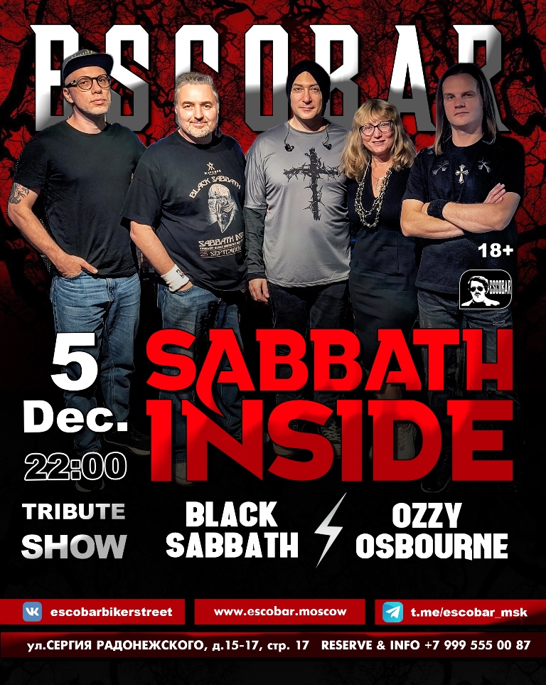 | ₽ 15005 ДЕКАБРЯ! SABBATH INSIDE – трибьют BLACK SABBATH и OZZY OSBOURNE!