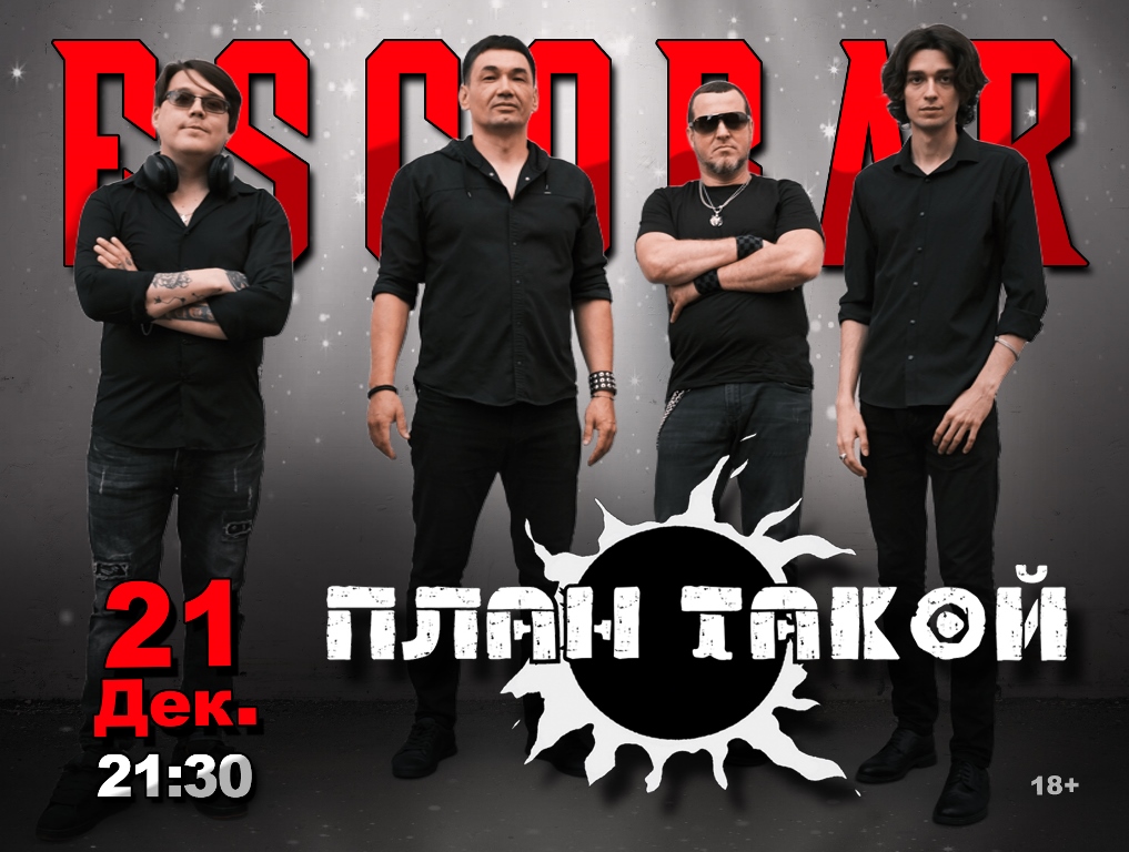 Купить билет Эскобар представляет! 21 декабря– План Такой! Бессмертные хиты легендарной группы «Кино» в исполнении группы «План Такой»! Начало в 21:30 Вход: 1000р |18+ До встречи в Эскобаре! ___ [...]