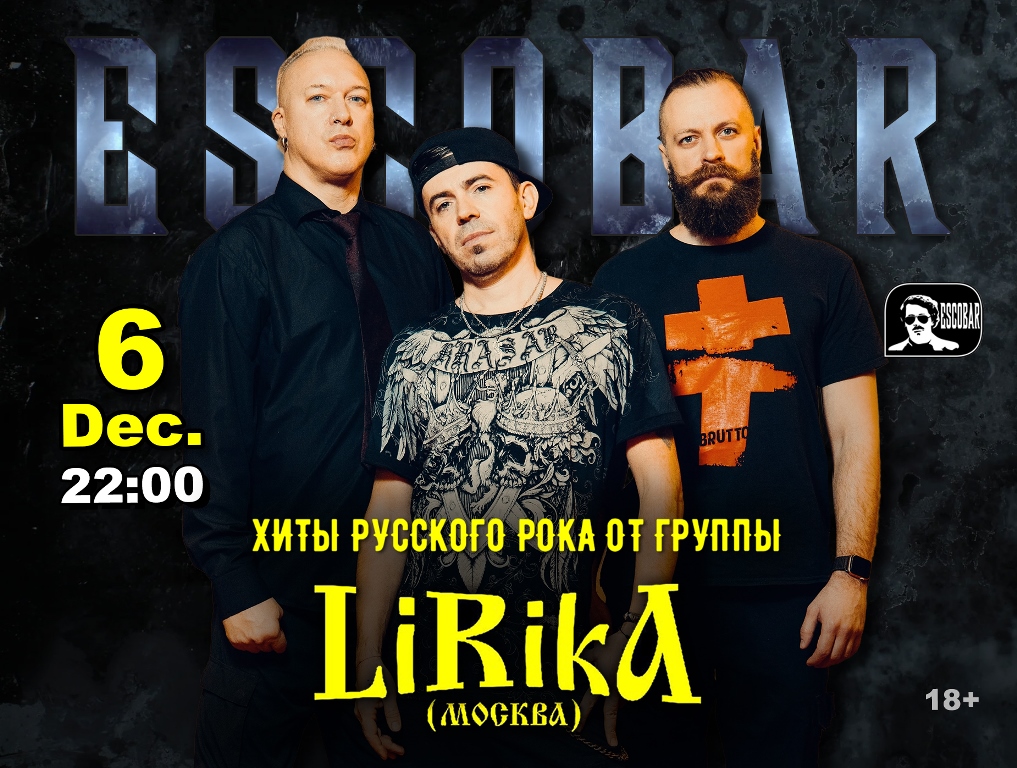 Эскобар представляет! 6 декабря – LiRikA Лучшие хиты русского рока в исполнении группы LiRikA! Сбор гостей с 21:30, начало в 22:00 》》После концерта DISCO — отдыхаем и танцуем до [...]