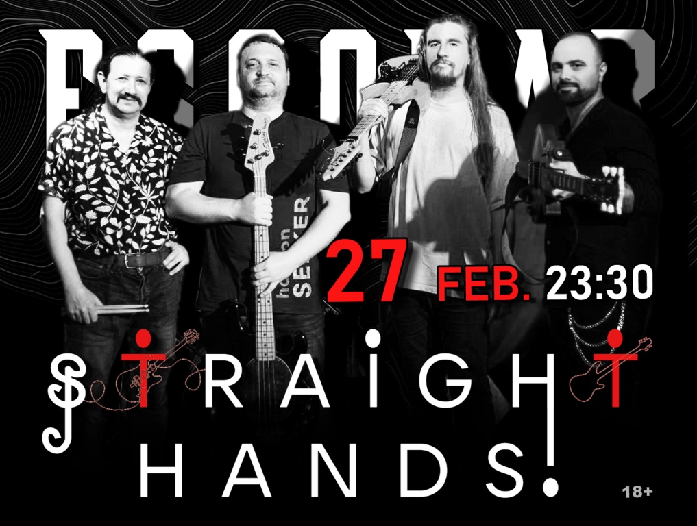 Купить билет 27 февраля – Straight Hands! В программе: - мировые топ-рок-хиты (такие, как Johny B. Goode, I Feel Good, Is This Love, Still Got the Blues, Holy Diver, [...]