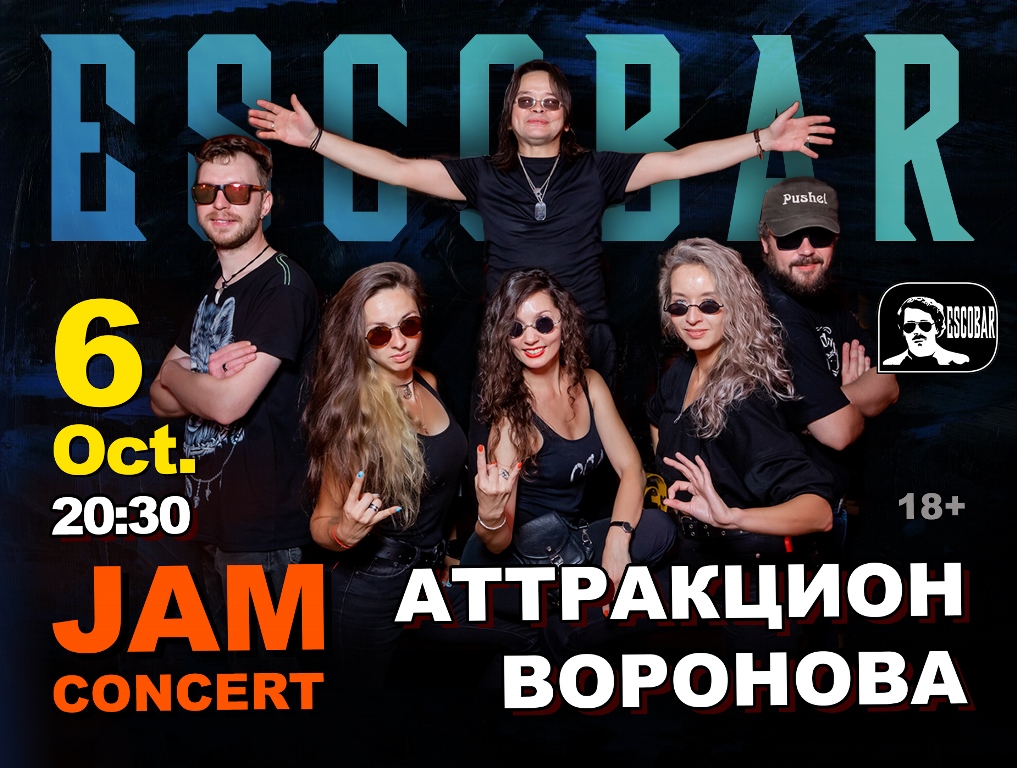 Эскобар представляет! 6 октября - традиционный Джем-концерт с группой Аттракцион Воронова! Несколько часов по-настоящему живой музыки в отличной компании! Будет весело! До встречи в Эскобаре! __ Бронь столов по [...]