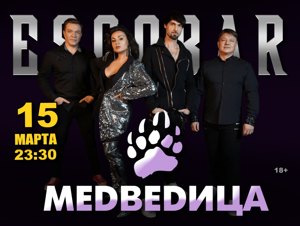 Эскобар представляет! 15 марта – Медведица ! Начало в 23:00 Мощный женский вокал, живая музыка, любимые рок-хиты – всё это кавер-группа «Медведица» В репертуаре самые яркие хиты русского и [...]