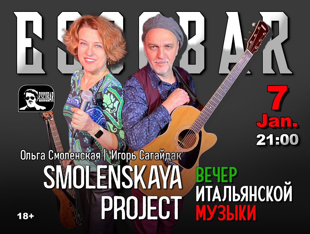 Купить билет Эскобар представляет! 7 января – Smolenskaya Project | Вечер итальянской музыки! Smolenskaya Project это – элегантное сочетание яркого вокала и акустической гитары от Ольги Смоленской и Игоря [...]