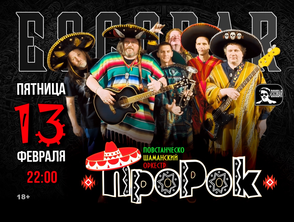 Купить билет 13 февраля – Повстанческо-Шаманский Оркестр (ПШО) ПроРок В пятницу 13 февраля , в Эскобаре будет страшно весело и ужасно интересно! Из Петербурга в гости к нам едет [...]