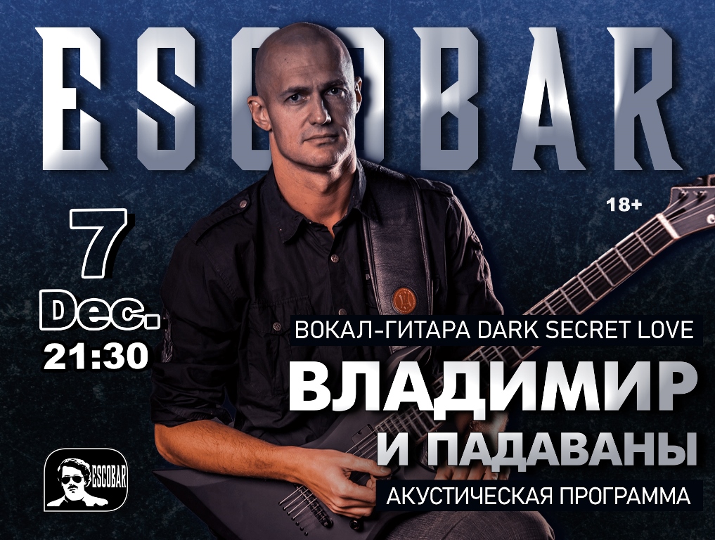 Купить билет Эскобар представляет! 7 декабря — Владимир и падаваны! Группа Dark Secret Love хорошо известна постоянным посетителям нашего прекрасного бара Эскобар по отличным трибьют программам. В этот вечер [...]
